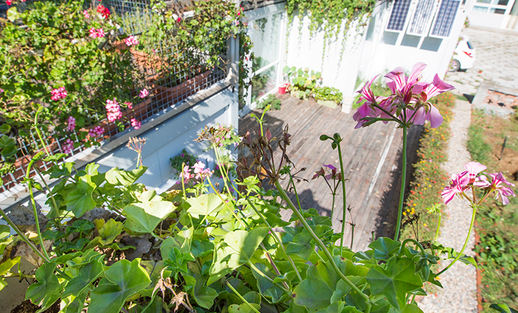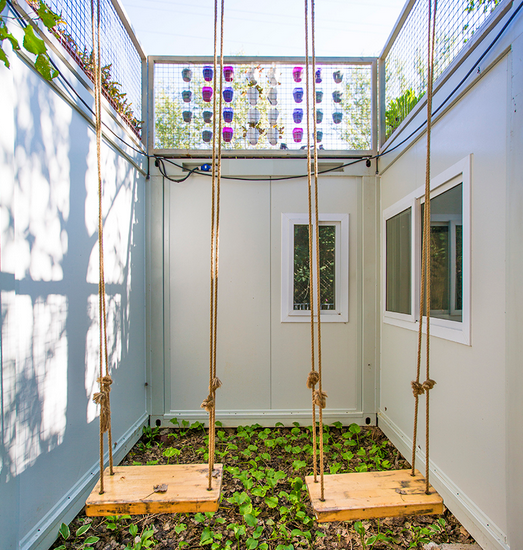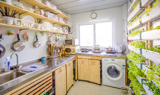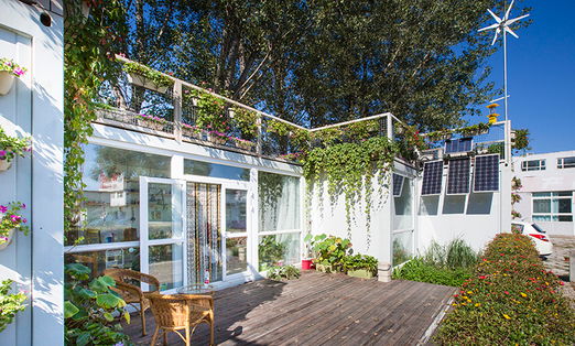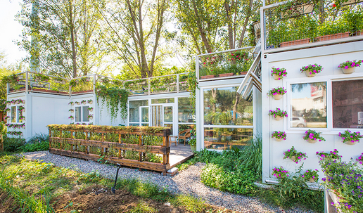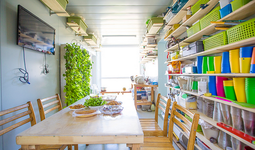 在北京市顺义区马坡镇,有一座由六个集装箱模块组合而成的“可持续实验室”。墙壁上挂满了鲜花,屋顶种有芹菜、生菜等绿色食品,同时使用太阳能、风能、沼气等增加能源自给能力,俨然一副“世外桃源”的景象。