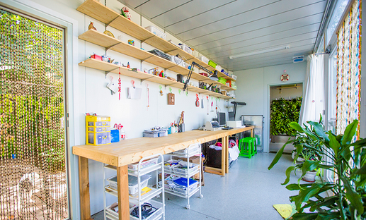 六个集装箱包含住宅区、办公区、厨卫、生态创客空间,以及屋顶和立体种植等。